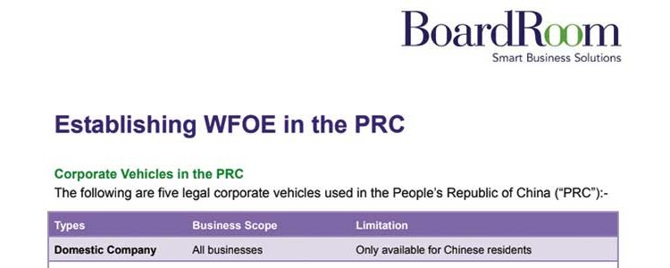 Establishing WFOE in the PRC